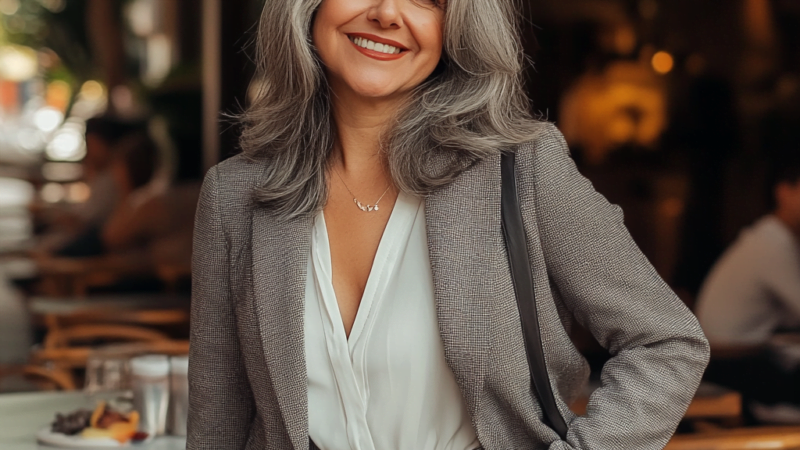 Invista em blazers em cores neutras como bege, preto ou cinza para criar looks atemporais e elegantes em qualquer idade, mas principalmente moda depois dos 40!